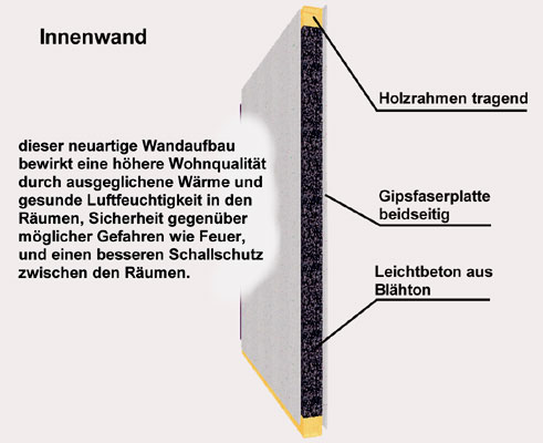 Gegenüber stehen sich das Fertighaus und das Massivhaus mit all ihren Arten, Variationen und bauphysikalischen Eigenschaften. Durch die Kombination zweier Bauweisen ist eine neue Bauart entstanden. Diese verbindet die unterschiedlichen Eigenschaften auf eine sehr vorteilhafte Weise. Außen die tragende, hochwärmegedämmte Wandschicht in Holztafelbauweise in Verbindung mit einer Klimaschicht aus Blähton-Leichtbeton und Gipsfaserplatte als Oberfläche auf der Innenseite ist die Lösung.